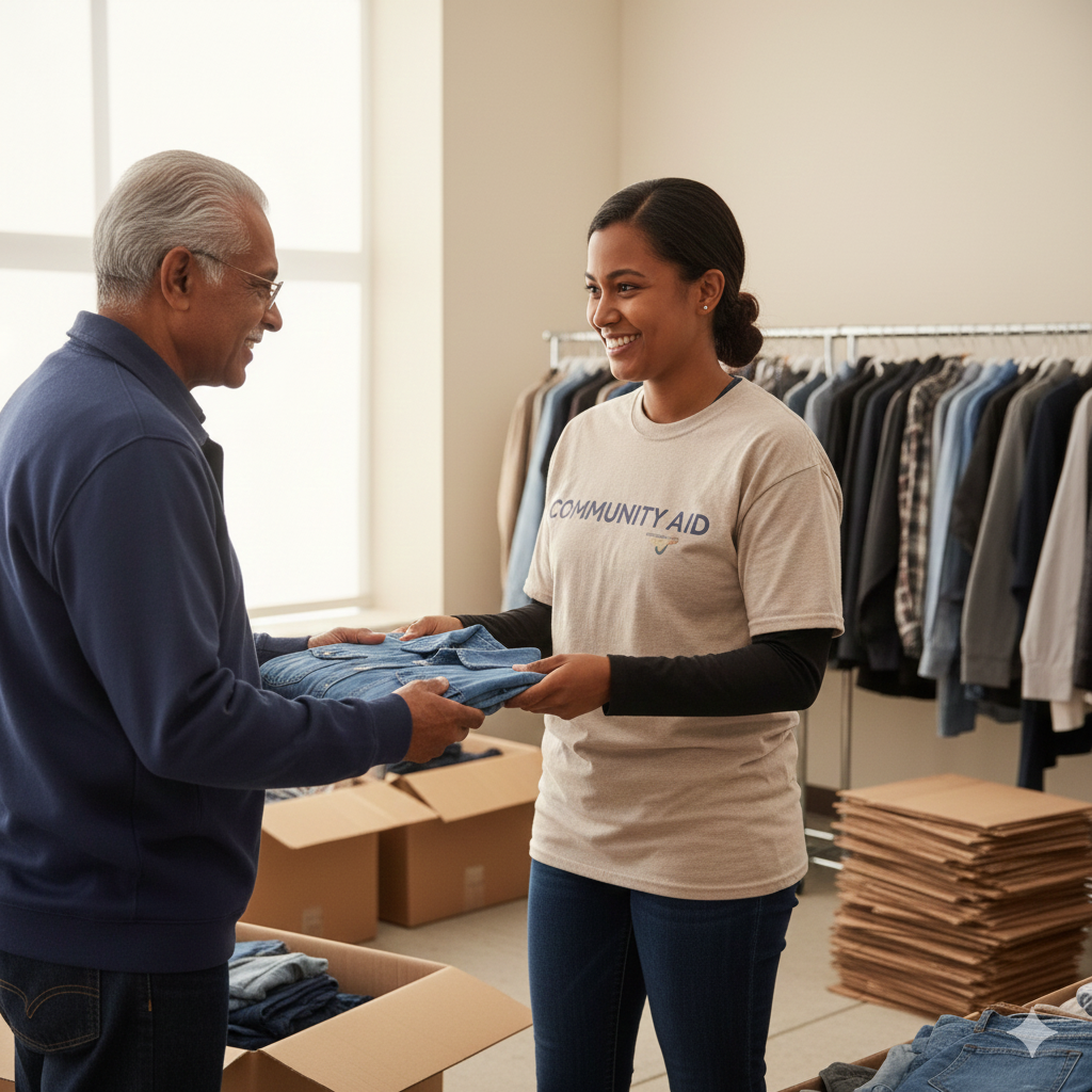 Volunteers assist with sorting, organizing, and distributing clothing in the community